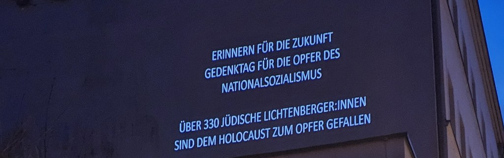 An die Giebelwand des Stadthauses werden über 300 Namen von aus Lichtenberg und Hohenschönhausen vertriebenen und ermordeten Jüdinnen und Juden projiziert. Sie werden bis in die Morgenstunden des 28. Januar 2026 zu lesen sein.