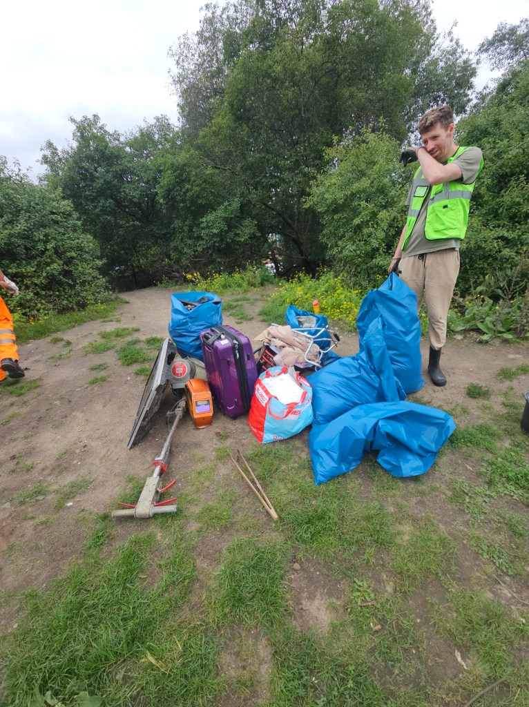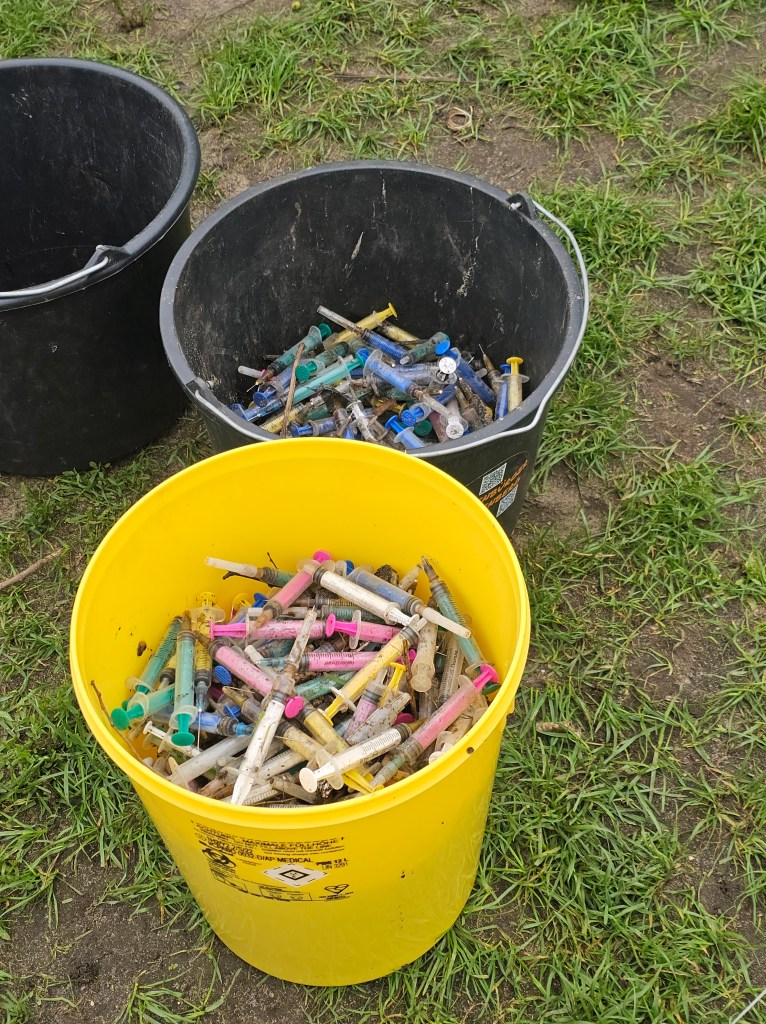 Material sollte jede:r selbst mitbringen – wir steuern begrenzt auch etwas als Reserve bei. Vor allem kümmern wir uns um Müllsäcke und um die Müllentsorgung, bringen Abwurfbehälter für Kanülen mit sowie Erste-Hilfe-Sets wie Pflaster, Wunddesinfektion und ca. ein Dutzend Paar stichfeste Handschuhe oder Eimer, mit denen es sich in den Hecken besser sammelt.