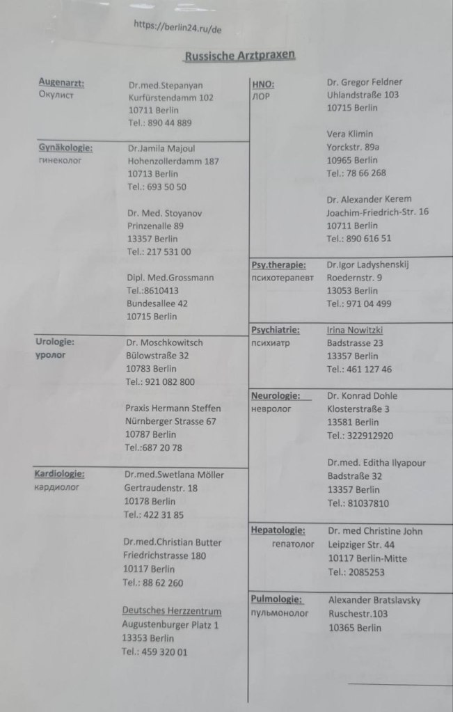 🇩🇪 Liste von Ärzten in Belin, die Ukrainisch, Russisch oder Englisch sprechen. – 🇺🇦 Список лікарів в Берліні, які розмовляють українською, російською або англійською мовами: