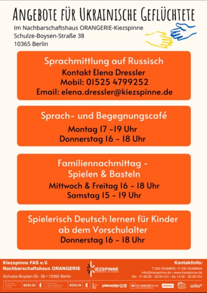 🇩🇪 Angebote für ukrainische Geflüchtete von Kiezspinne FAS e.V.