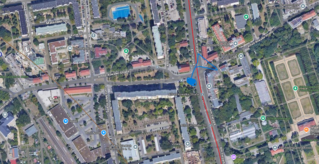 Treffpunkt: Alfred-Kowalke-Str./ Am Tierpark (s. Foto, zum Vergrößern anklicken)