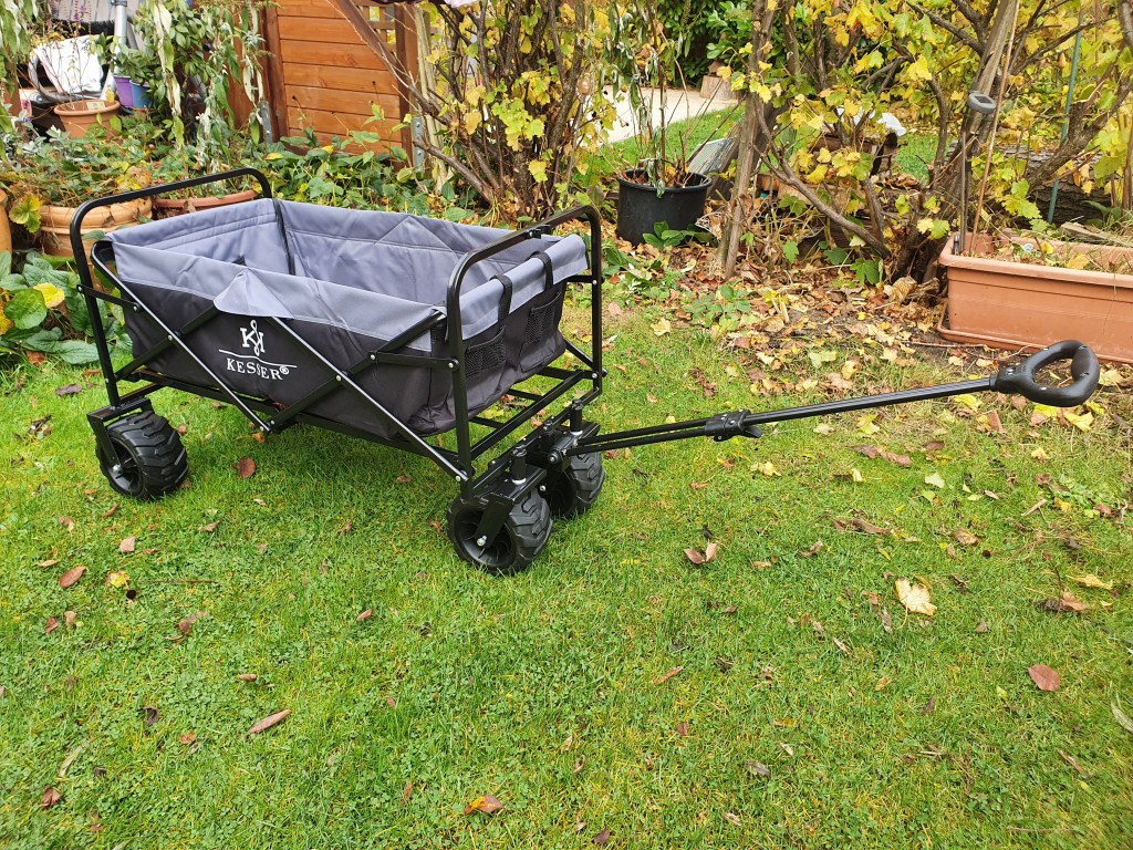 - eines Bollerwagens, aufgrund breiter Räder gut geeignet für Sandwege wie im Biesenhorster Sand ;-), belastbar bis 80kg