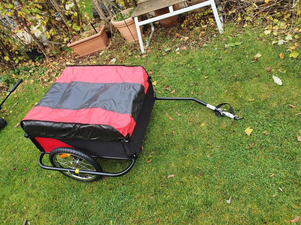 - eines Fahrradlastenanhängers, auch als Handwagen benutzbar, belastbar bis 60kg