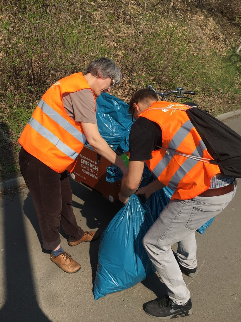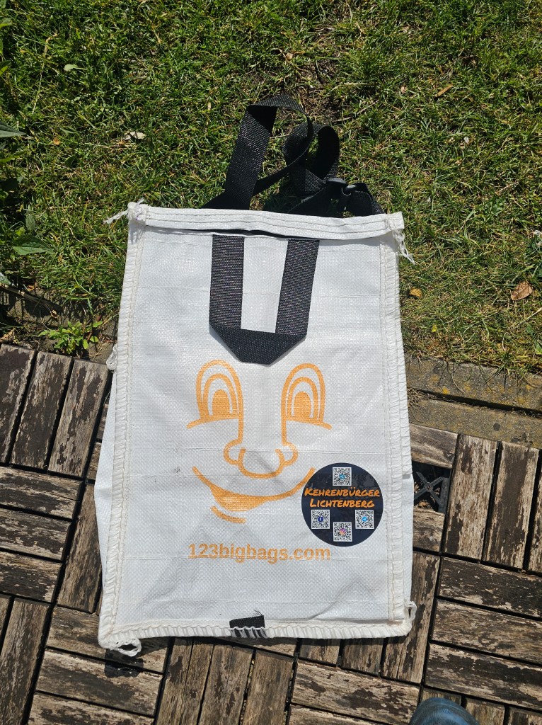Wieder einmal DANKE an den Bezirk Lichtenberg und die zuständige Referatsleiterin Frau Vela-Sanchez, die uns FEIN-Mittel in Höhe von 410€ gewährten, um Material zu kaufen: Verwendet für Kinderwesten, BigBags, Greifzangen – dazu haben wir aus unseren privaten Mitteln ca. 150€ aufgewendet, um „Faule Greten“ u.a. zu erwerben.