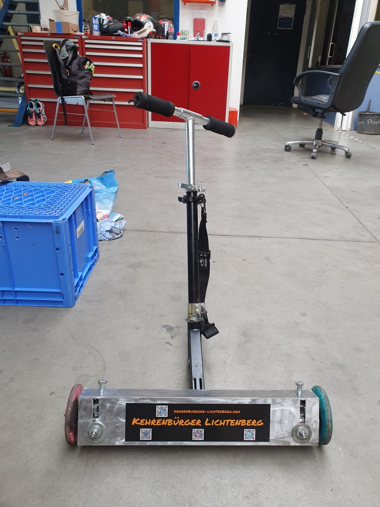 - Aufkleber fürs Markieren unseres Materials (Zangen, Eimer und das Lastenrad tragen nun Aufkleber mit QR-Codes, die zu unseren Kanälen führen)