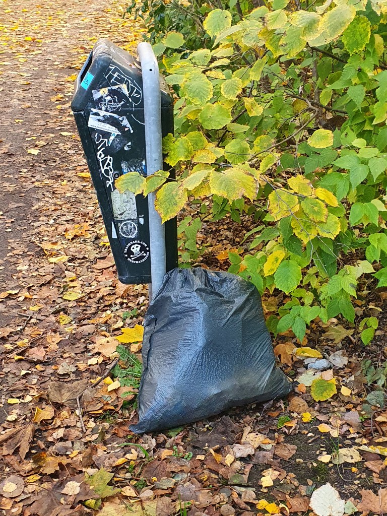 Eigentlich war nur geplant, Altpapier zum 2,2km entfernten Wertstoffhof zu bringen – wenn man dann eh den Bollerwagen dabei hat, kann man auch Eimer und Greifer mitnehmen, um dann 2 volle Mülltüten aus dem Gebüsch zu klauben, diese entweder in die oder wenigstens neben Mülleimer zu packen, den Wagen mit Altmetall wie Vorhangstangen und Ofen zu bepacken, alles am Wertstoffhof abzugeben samt des Altpapiers, um dann nochmals einen Wagen voll Altmetall und Sperrmüll zu holen und abzugeben.