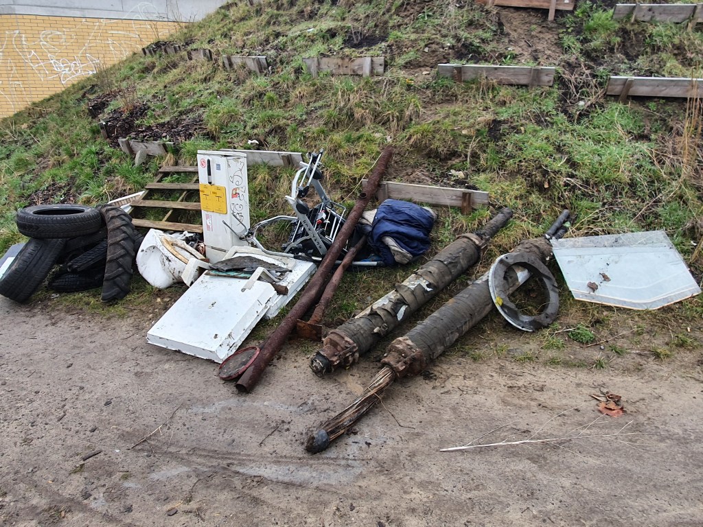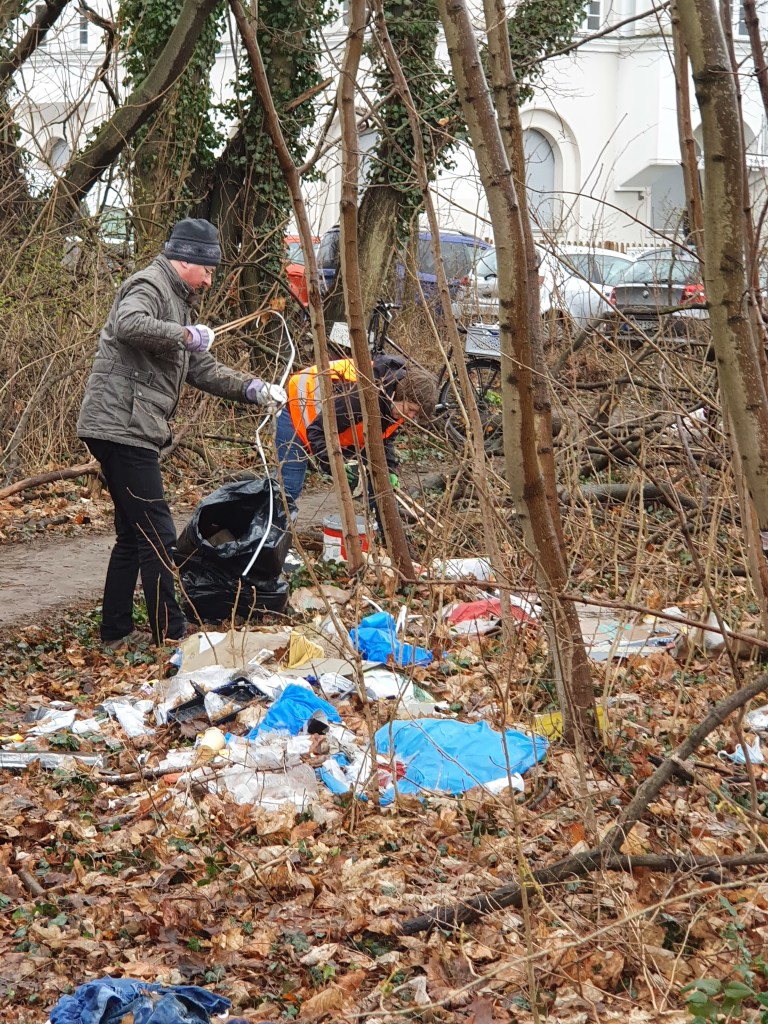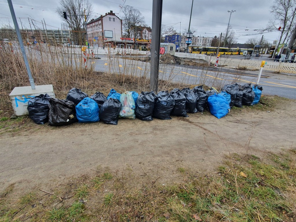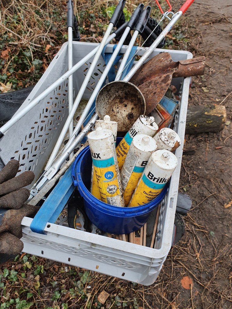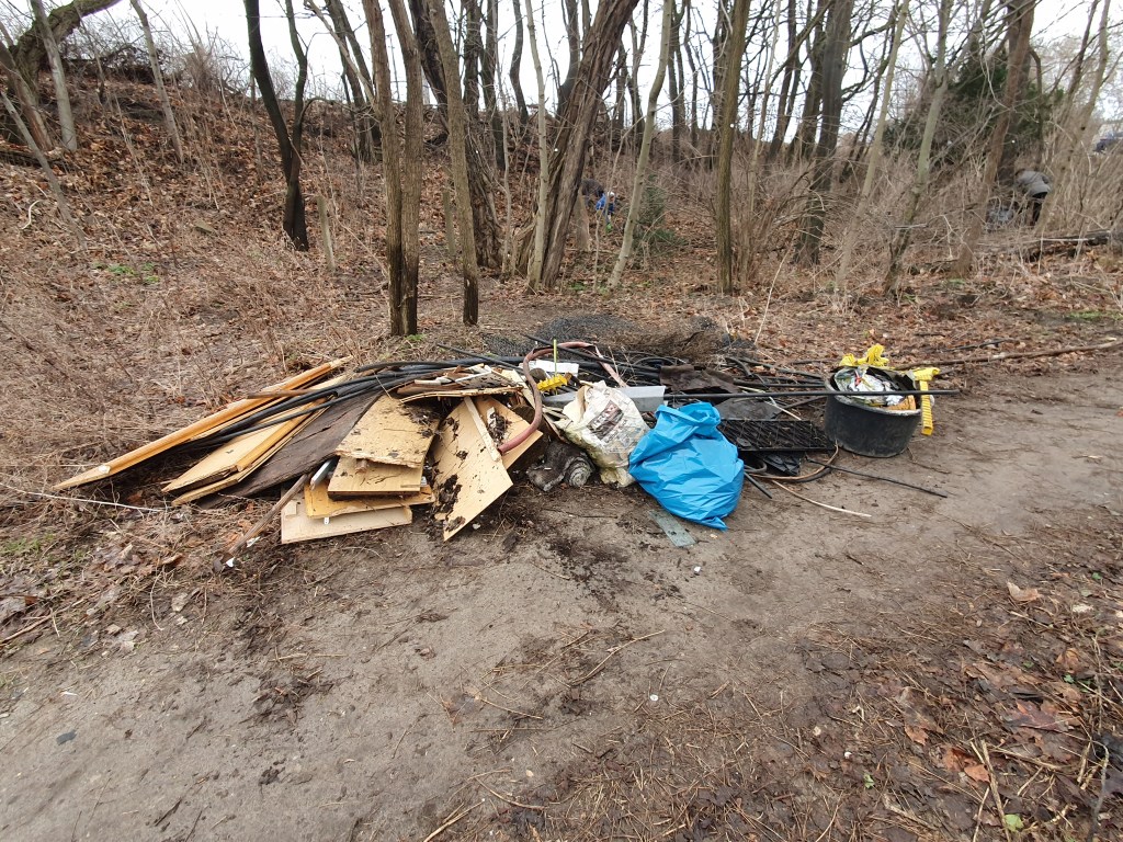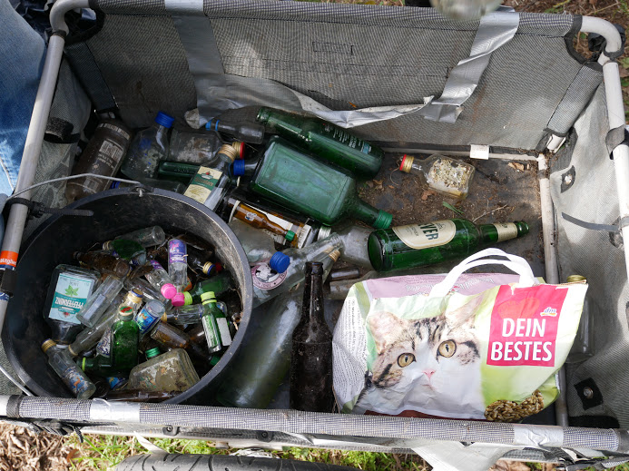 Ein kleines Waldstück am S-Bahnhof Schöneweide beräumt, in über 4h 30 Säcke voll Müll, einen schrotthaufen, einen Sperrmüllhaufen, einen riesigen Berg Altkleider, einen ebensolchen Berg Flaschen