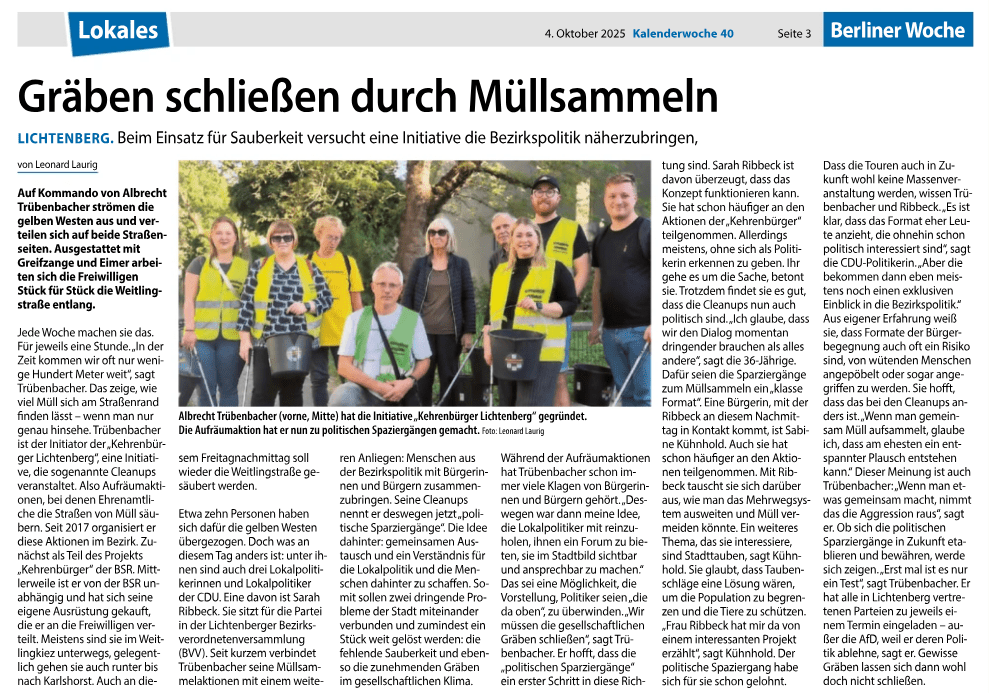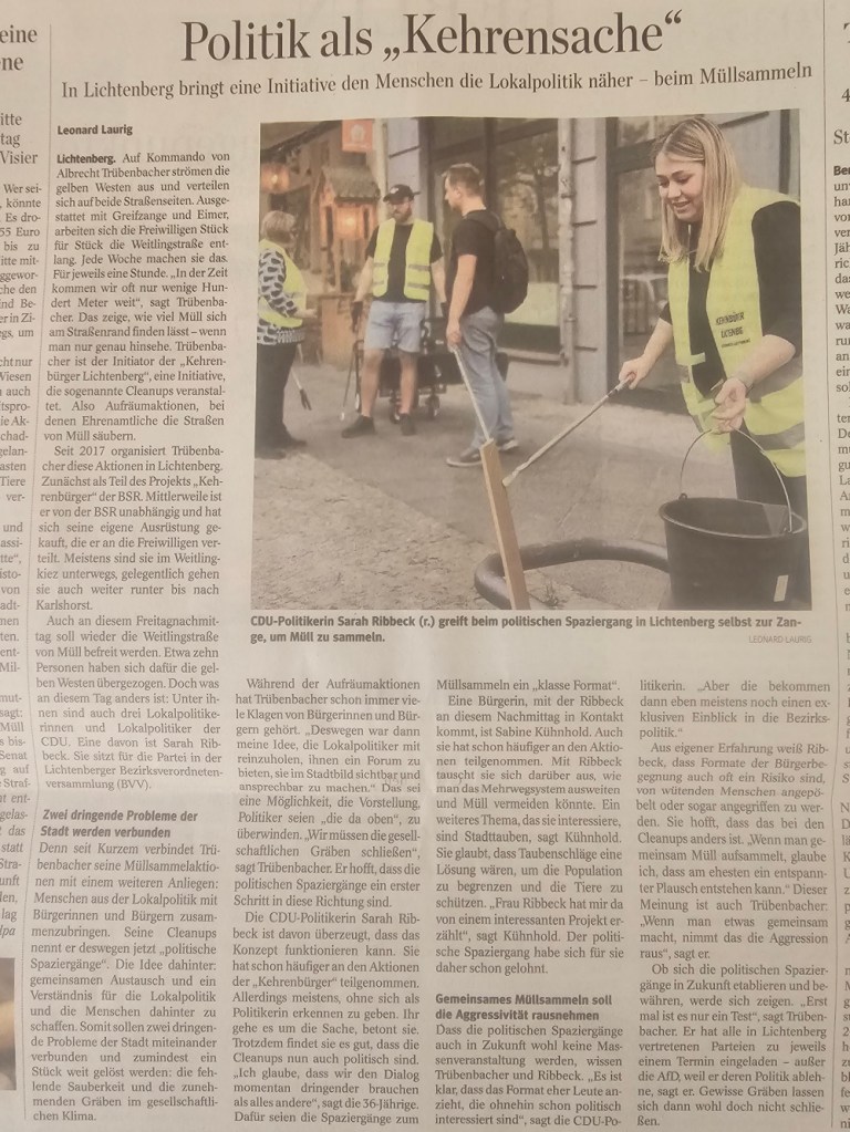 2025-09-23: Die „Politischen Spaziergänge“ der ‚Kehrenbürger LICHTENBERG‘ finden ein erstes Presse-Echo: